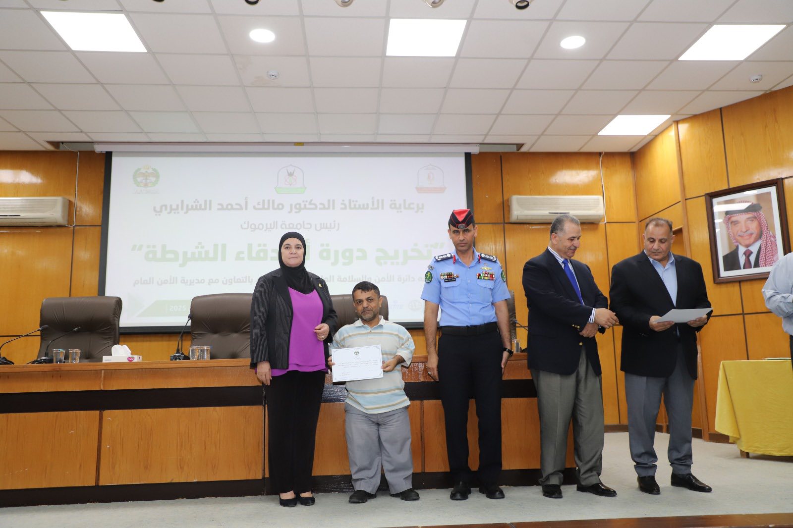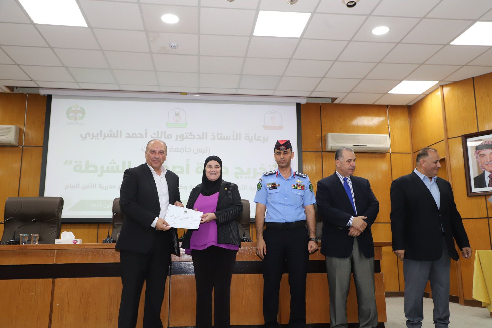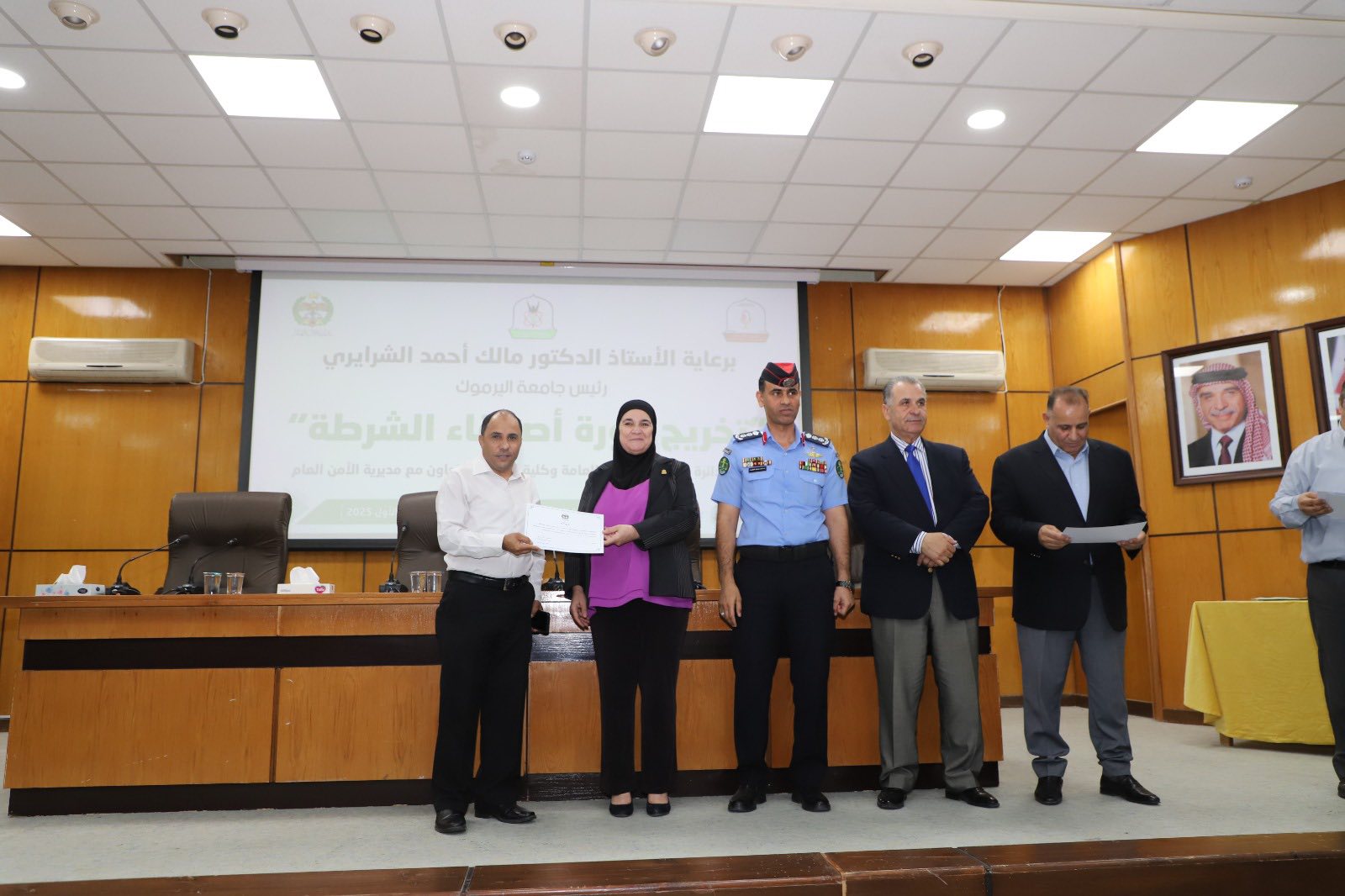 مندوبا عن رئيس الجامعة الدكتور مالك أحمد الشرايري، رعت نائب رئيس الجامعة الدكتورة ربا البطاينة، بحضور مساعد مدير شرطة إربد العقيد حسام العجارمة، وعميد كلية الإعلام الدكتور زهير الطاهات، ومدير دائرة الامن الجامعي والسلامة العامة محمد العثامنة، ورئيس فرع الشرطة المجتمعية الرائد منذر العبابنة، حفل تكريم وتوزيع الشهادات على أفراد دائرة الأمن والسلامة العامة، المشاركين في دورة أصدقاء الشرطة التي نظمتها دائرة الأمن والسلامة العامة بالتعاون مع مديرية الأمن العام، وكلية الإعلام.